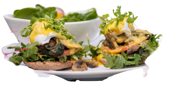 Mushroom & Spinach Benedict $22.95Muffin, Arugula, Mushroom & Spinach Tomato, Poached egg, Hollandaise sauce Micro Cilantro *Vegetarian*